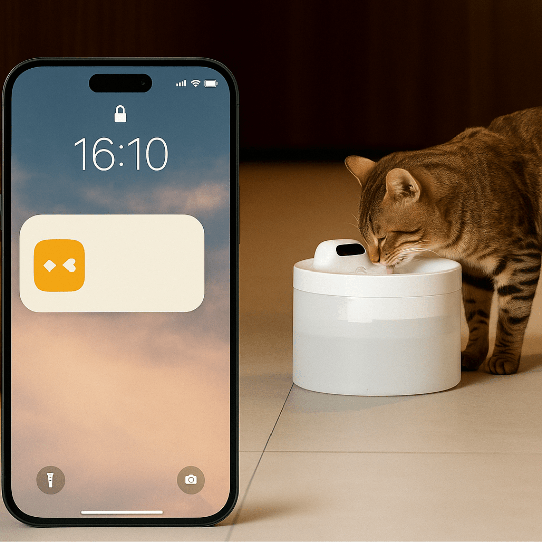 De app registreert continu het drinkgedrag van uw kat en waarschuwt bij afwijkingen. U krijgt inzicht in drinkfrequentie, gemiddelde duur en voorkeurstijden van uw draadloze kattenwaterfontein.