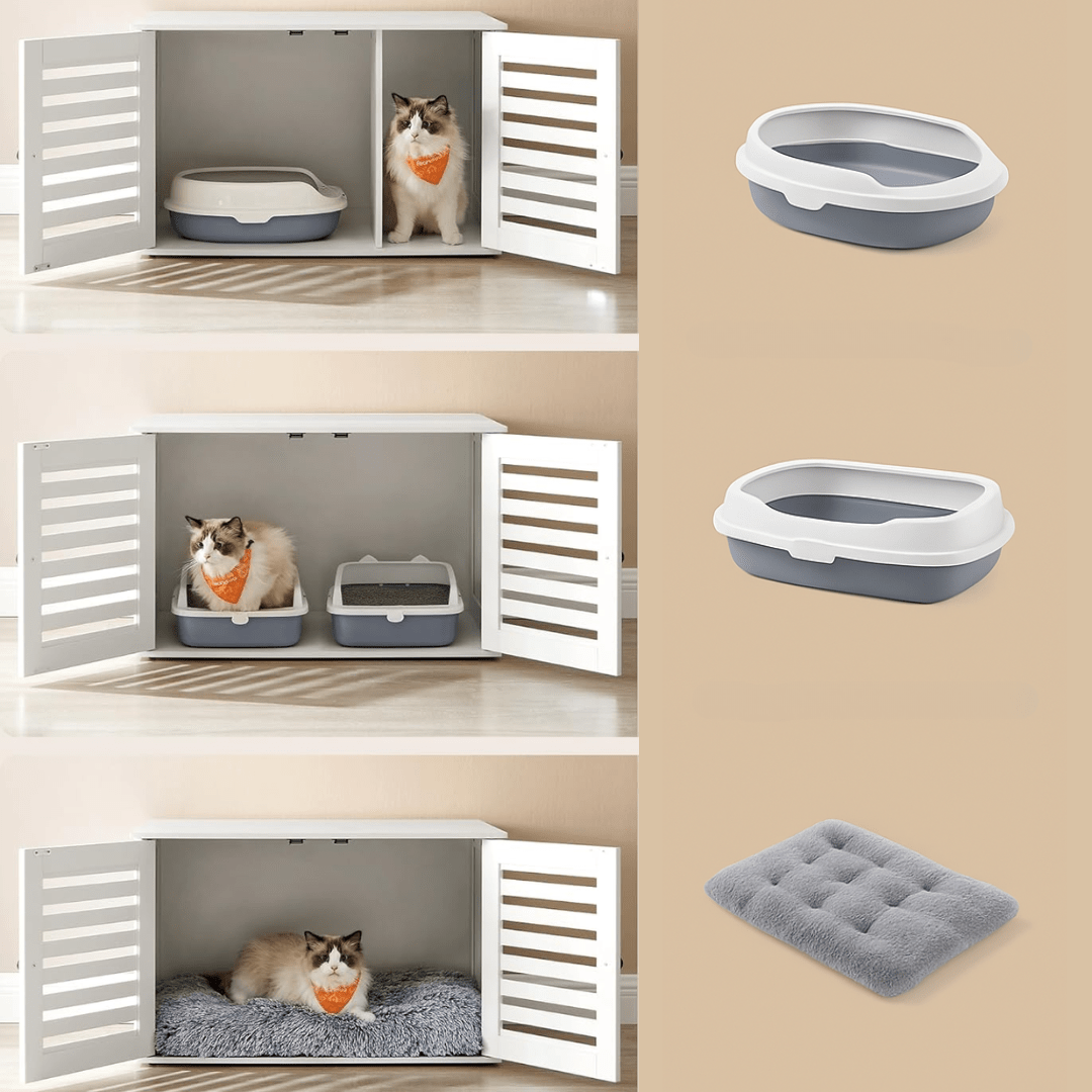 Deze kattentoilet kast biedt uw kat de privacy die hij nodig heeft tijdens toiletbezoek. De afgesloten ruimte met zij-ingang zorgt ervoor dat uw kat zich veilig en comfortabel voelt. De kattenbak ombouw houdt tegelijkertijd nieuwsgierige kinderen en andere huisdieren op afstand.