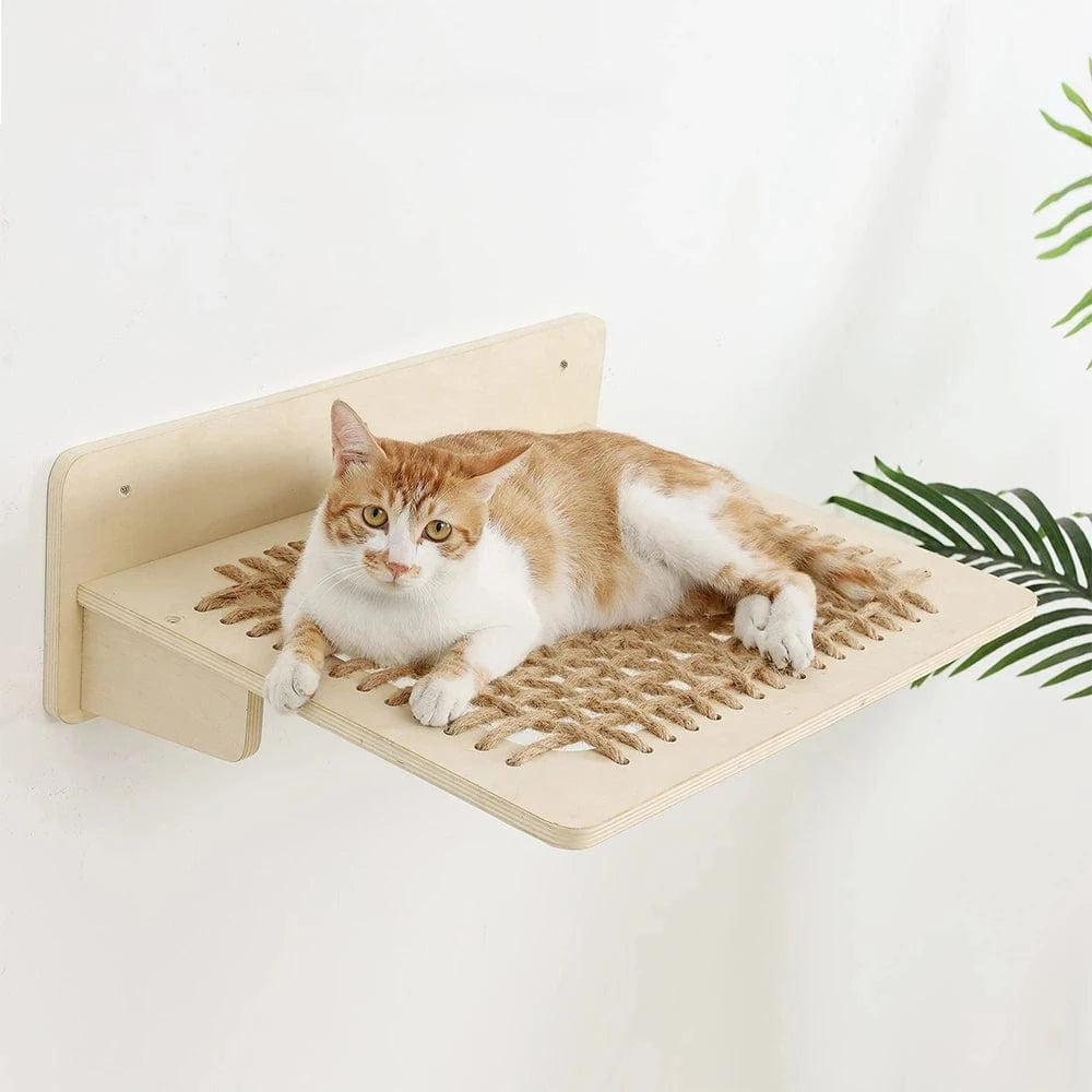 De sisalbekleding op diverse elementen van deze wandgemonteerde katten krabpaal voldoet aan de natuurlijke krabbehoeften van je kat en helpt bij het onderhouden van gezonde nagels. Elk onderdeel is ontworpen om het lichaam van je kat perfect te ondersteunen, voor maximaal comfort tijdens rust- en speelmomenten.