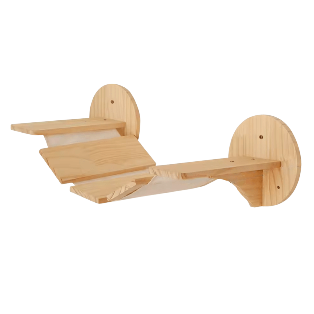 We gebruiken uitsluitend natuurlijk grenenhout voor onze wandelementen, wat zorgt voor duurzaamheid en veiligheid. Dit hout is niet-toxisch en volledig huisdiervriendelijk. De zachte stoffen bekleding is geurloos, kleurvast en machinewasbaar, zodat je gemakkelijk een schone omgeving voor je kat kunt behouden.