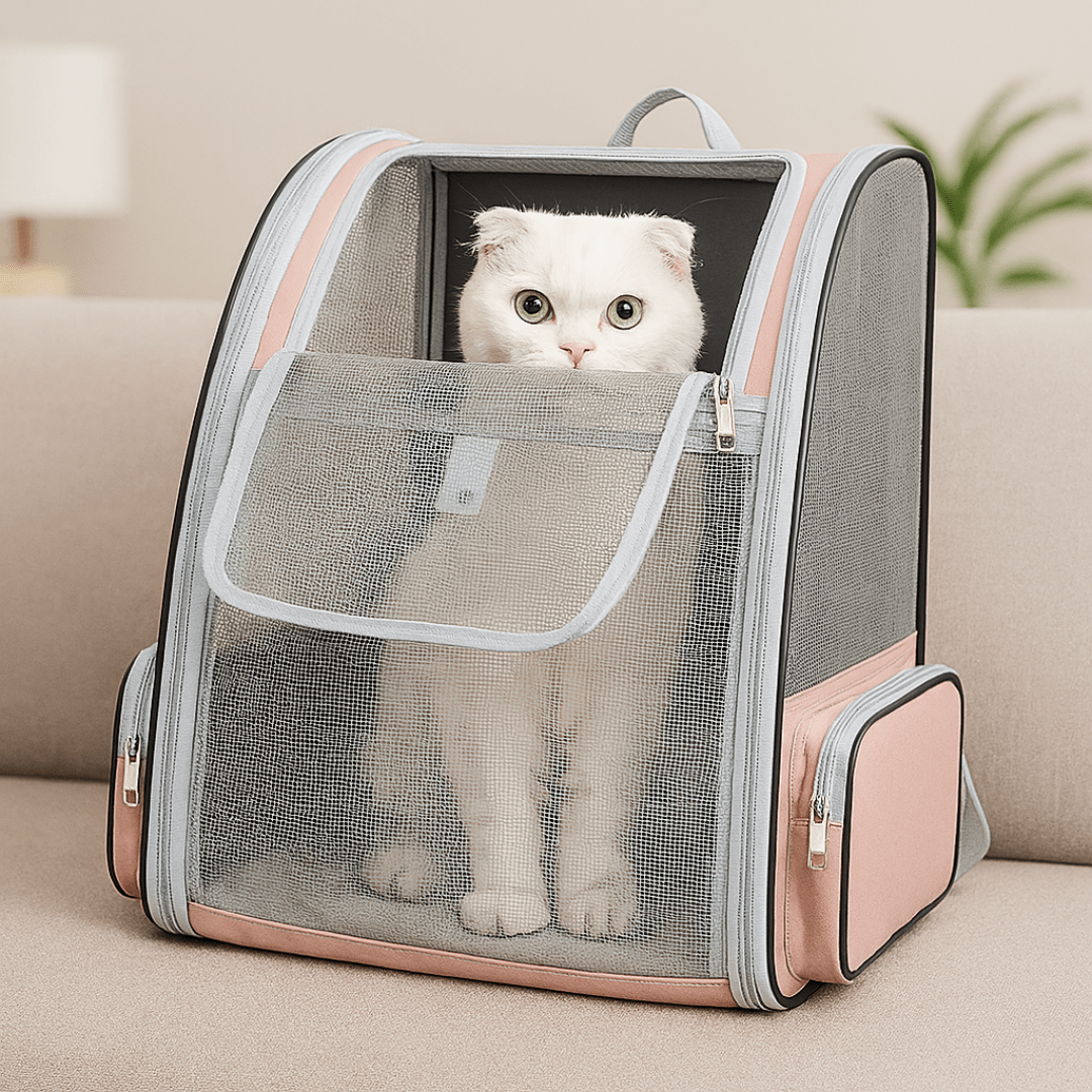 Deze opvouwbare kattenrugzak kan gemakkelijk worden ingeklapt wanneer niet in gebruik, wat kostbare ruimte bespaart in uw huis. Het lichtgewicht fiber materiaal maakt de rugzak makkelijk draagbaar terwijl het toch stevig genoeg is voor dagelijks gebruik.