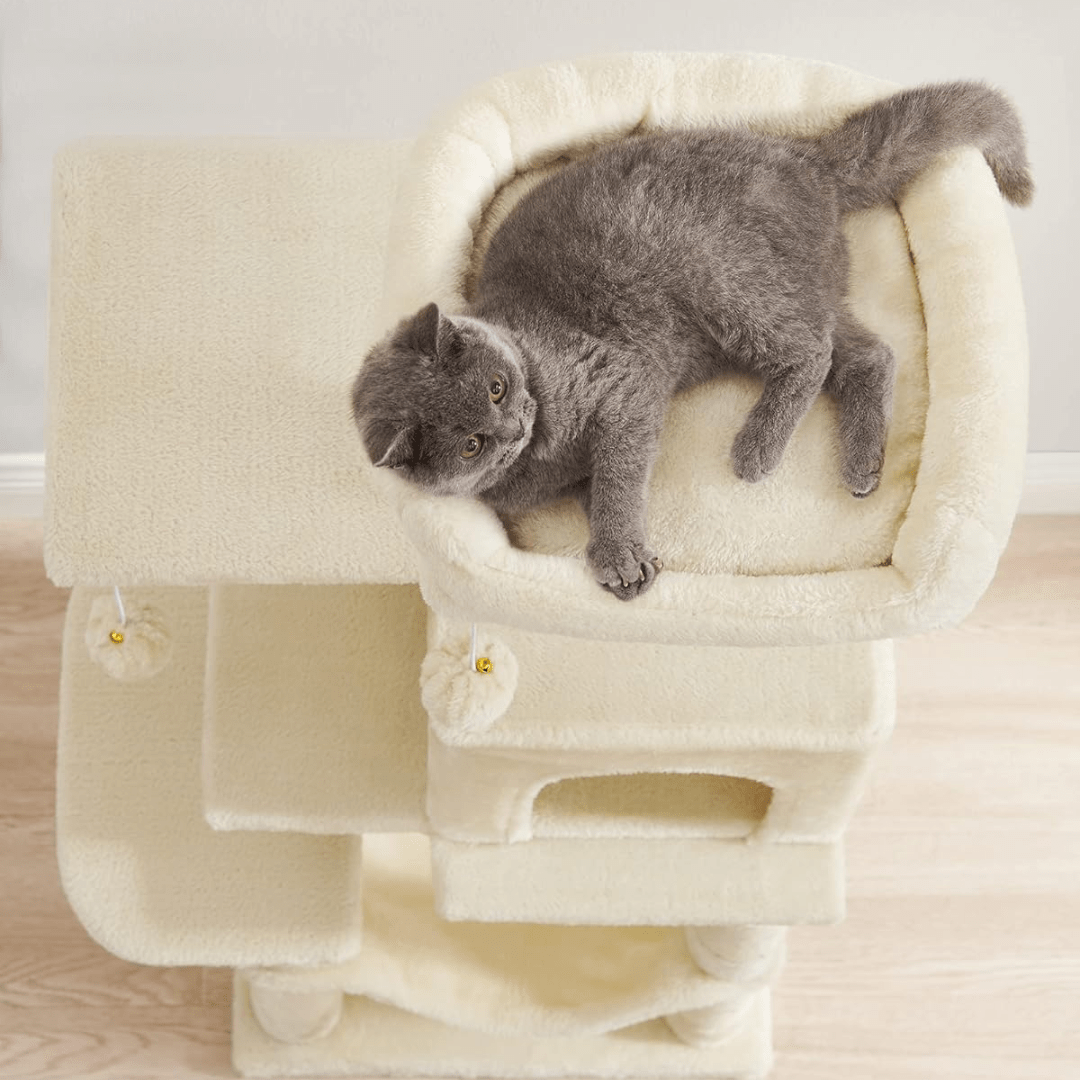 De hoogwaardige pluche bekleding van deze krabpaal in beige voelt zacht aan voor kattenpootjes en is tegelijkertijd duurzaam. De neutrale beige kleur past perfect in moderne interieurs zonder op te vallen.